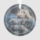 Célébrez votre fiançailles avec ce magnifique ornement de conservation classique.Le texte blanc dit "Notre premier Noël", avec le mot "Engagé" ci-dessous dans un élégant script manuscrit. Vos noms et votre année sont dans la police serif classique. Remplacez l'espace réservé photo par votre photo préférée. La photo est encadrée d'une élégante bordure pointillée. Un filtre dégradé foncé fait apparaître le texte blanc et la bordure. Photo de Felicia Montenegro sur Unsplash.