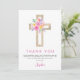 Pastel Rose, Orange et Purple Floral Fleurs Roses Cross Botanical Watercolor Religious First (1er) Holy Communion Merci cartes.