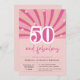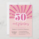 Apportez une ambiance rose tendance et rétro pour sa fête du 50e anniversaire avec ces cartes postales d'invitation vibrantes. Facile à customiser avec tous les détails de la célébration et mettant en vedette la typographie vintage mignonne. Texte : "50 et fabuleux ! Rejoignez les célébrations pour (nom) anniversaire".