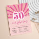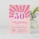 Bring a trendy, retro pink vibe for her 50th birthday party with these vibrant invitation postcards. Easy to customize with all the celebration details and featuring cute vintage typography. Text: "50 and fabulous! Join the celebrations for (name's) birthday".