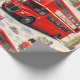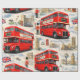 Wrap your gifts in the timeless charm of the British capital with this vintage London premium wrapping paper this beautifully detailed collage features the most iconic symbols of London including the classic red double-decker Roma bus the Majestic Big Ben, the houses of Parliament and stoic Royal guard in a traditional bar skin hat accented with the Union Jack flag and classic black cabs against a soft cloudy