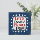 "Let's Take A Road Trip" est un joli design de texte en bleu avec du texte en noir et rouge. Les mots s'assoient sur une forme d'accent blanc entourée de mignons points blancs.