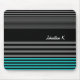 A preppy mens fashion mousepad with fresh teal and black stripes on the bottom and a trendy black and grey striped pattern on the rest of the pad. Personalize by adding your name to this modern contemporary style mat.
