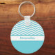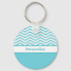 Preppy Aqua Blue and White Chevrons With Name Keychain