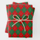 Preppy Argyle Tartan Diamond Plaid Red Green Wrapping Paper Sheet