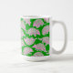 A green mug with playful illustrations of pink and green preppy armadillos. The bright green background and the lively, preppy armadillos create a whimsical and fun atmosphere, perfect for your coffee, tea, or ice cream!