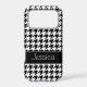 A preppy black and white houndstooth pattern design is featured on this iPhone case. Modern and cute -- Perfect for a girly tween or teenager. Easily personalize with your name!