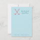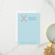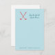 This preppy and pretty sky blue personal stationery is perfect for the lady that loves to golf and features two red irons crossed above a golf ball on a tee. The text is easy to customize, with "from the desk of" and her name in a classic script font at the top and her contact information in a modern serif font at the bottom of the card. These flat note cards are wonderful for correspondence, as a gift for a golf coach or shop professional, or as a gift for the girly student athlete.