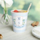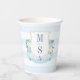 Enhance the refreshments station with our coastal-themed paper cups, featuring a hand-painted watercolor blue and white monogram crest . Ideal for nautical-themed weddings or bridal showers, these stylish and personalized cups add a sophisticated touch to your celebration. This paper cup design features a hand painted coastal crest with hydrangeas, foliage, an anchor and oyster shells. The crest shape is a ships rope border. All watercolor elements originally hand painted by me before being scanned into digital form.