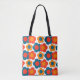 Preppy Blue Orange Hippie Flower Pattern Tote Bag