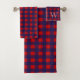 Preppy Blue & Red Buffalo Check Plaid | Monogram Bath Towel Set