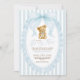 Celebrate in classic style with this coquette-inspired teddy bear baby shower invitation, featuring soft watercolor illustrations, vintage stripes, and the sweetest powder blue bow. The design blends timeless charm with a preppy, polished aesthetic—perfect for mamas who love dainty details and soft storytelling.