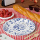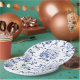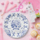 Preppy Blue Toile Hydrangea Bow with Name Paper Plate