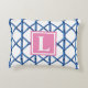 Preppy Blue Trellis Bamboo Pattern Monogram Accent Pillow