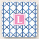 Preppy Blue Trellis Bamboo Pattern Monogram Coaster