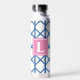 Preppy Blue Trellis Bamboo Pattern Monogram Water Bottle