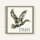 This hunting inspired monogrammed notebook features a classic flying mallard duck in camouflage print of dark green and brown on each side. Personalize the monogram on the front with your choice of .initials