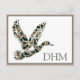 This monogrammed postcard features a flying mallard duck in camouflage print of brown and dark green. Personalize the matching green monogram with your choice of initials.