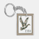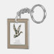 This fun monogrammed keychain features a flying mallard duck in camouflage print of brown and dark green. Personalize the monogram on the front with your choice of initials and your special text on the back. Perfect for personalized gift bags and party favors.