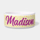 I absolutely love this product! I was a little concerned prior to buying it, but I was blown away by the quality of the item. The bowl is sturdy and arrived clean without any damage. The printing was crisp and clean and looks Better than I hoped! My dogs immediately knew these were for them and get very excited to pose with their new bowls! Definitely recommend and will purchase more in the future! The printing is crisp and well done. It looks absolutely beautiful on the bowl, and I can tell that it’s going to hold up well over time.