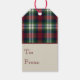 This design is a tartan or plaid pattern featuring a festive color palette, primarily consisting of cheery red, deep forest green and navy blue, overlaid with thin intersecting lines of white and gold. The overall effect is sophisticated and traditional, with the dark greens and reds making it highly suitable for use as Christmas wrapping paper, offering a classic and subtly festive aesthetic.