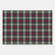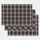 This design is a tartan or plaid pattern featuring a festive color palette, primarily consisting of cheery red, deep forest green and navy blue, overlaid with thin intersecting lines of white and gold. The overall effect is sophisticated and traditional, with the dark greens and reds making it highly suitable for use as Christmas wrapping paper, offering a classic and subtly festive aesthetic.