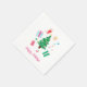 Festive holiday napkins featuring a merry and bright Christmas tree, holiday gifts, rainbow candy cane and pink and red stocking.