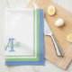 Preppy Cornflower Blue and Sage Green Monogram Kitchen Towel
