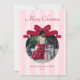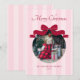 Send festive cheer with this modern holiday card, featuring cute pink stripes, a preppy red bow, and space for your favorite family photo. “Merry Christmas” shines in elegant script, while your family name and the year are displayed in sleek, contemporary typography—perfect for a stylish seasonal keepsake with a playful twist.