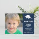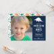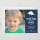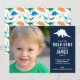This sweet and simple dinosaur invitation features a stegosaurus silhouette as well as your sweet kiddo’s photograph. Customize the party details. The back features a multi coloured dinosaur silhouette pattern.