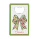 This fun personalized bottle opener features a beautiful floral bow in watercolor shades of pink and green on each side. Personalize with your choice of name on the front and special text on the back. Perfect for girl's weekend gift bags.