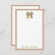 This fun personalized flat note card features a beautiful floral bow in soft preppy watercolor shades of pink and green on a matching background of pink and green . Personalize with your choice of name or special text.