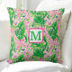 Preppy Giraffes Pink Green Tropical Monogram Throw Pillow