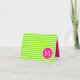 This preppy note card features classic green and white stripes with a bright pink and white monogram on the front and matching solid pink on the inside. Personalize the monogram on the front with your choice of initial.