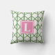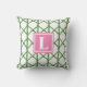 Preppy Green Trellis Bamboo Pattern Monogram Throw Pillow
