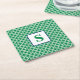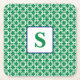 Preppy Green White Link Pattern Navy Monogram Square Paper Coaster