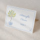 This design is sold as a 3.5x5 inches flat card that you will need to fold (or score and fold) in half yourself to make individual place cards or buffet cards with a folded size of 3.5x2.5 inches. This classic design features a stylized watercolor lemon tree, with mid-blue and white seersucker stripes on the reverse.