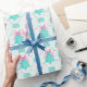 Preppy Mint Girly Christmas Gift Wrap Pink Bow