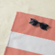 Preppy beach towel with coral background and silver stripes, on the bottom a navy blue border as a monogram holder. Personalize with your very own monogram in elegant font and choose between different colours. This beach towel can be paired with other accessories so do come by our store to see other items from this collection