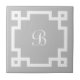 Preppy Monogram White Greek Key Border Grey Tile