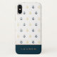 Obtenez votre coque iphone personnalisé pour un look élégant avec motif chic et preppy d'ancres or et argent sur un arrière - plan de votre choix marine, turquoise ou blanche.. Monogramme est sur une bordure blanche en fond en fonte sans serif or.