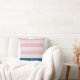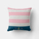 Preppy nautical throw pillow with blush and white stripes, on the bottom a navy blue border as a double monogram holder with a gold anchor between them. Personalize with your very own monogram in an elegant sans serif font and choose between two colours; blush and blue. Check out our store for more items from our ''Nautical Stripes'' collection.