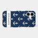 Preppy nautical navy blue anchor pattern custom iPhone 17 case . Custom phone covers for him or her. Cool modern typography design with maritime print. Classy new case with stylish lettering. Unique Christmas or Birthday gift idea for men, women and kids. Apple smartphone accessories, version Eleven. Add your own name, monogram or quote. Also available for older Apple models like X, 8, 7 and Samsung Galaxy smartphones. Special presents for husband, wife, boat captain, uncle, aunt, sailor, teenager etc.