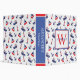 This cute monogrammed memory scrapbook binder features a nautical pattern of sailboats, lighthouses, anchors and ships in classic red, white and blue. Personalize the monogram on the front with your choice of name and initial and text on the spine with your choice of special text. Makes a great gift for baby showers.