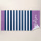 Preppy Nautical Stripe Navy Purple Calligraphy Beach Towel