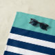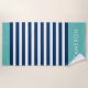 Preppy Nautical Stripe Navy Turquoise Name Beach Towel