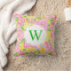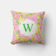 Preppy Palm Beach Print Pink Flowers Monogram Throw Pillow