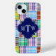 Preppy Patchwork Madras Navy Quatrefoil Monogram Case-Mate iPhone Case