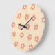 Preppy Peach White Hippie Flower Pattern Large Clock