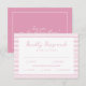 Preppy Peony Pink striped wedding RSVP card designed for a stylish coastal chic wedding celebration. Inspired by grandmillennial aesthetics and classic East Coast preppy style, this elegant minimalist striped reply card is perfect for brides planning a refined country club or seaside wedding. Pair with monogram stationery, silk ribbon, and soft pink florals for a timeless preppy wedding suite.